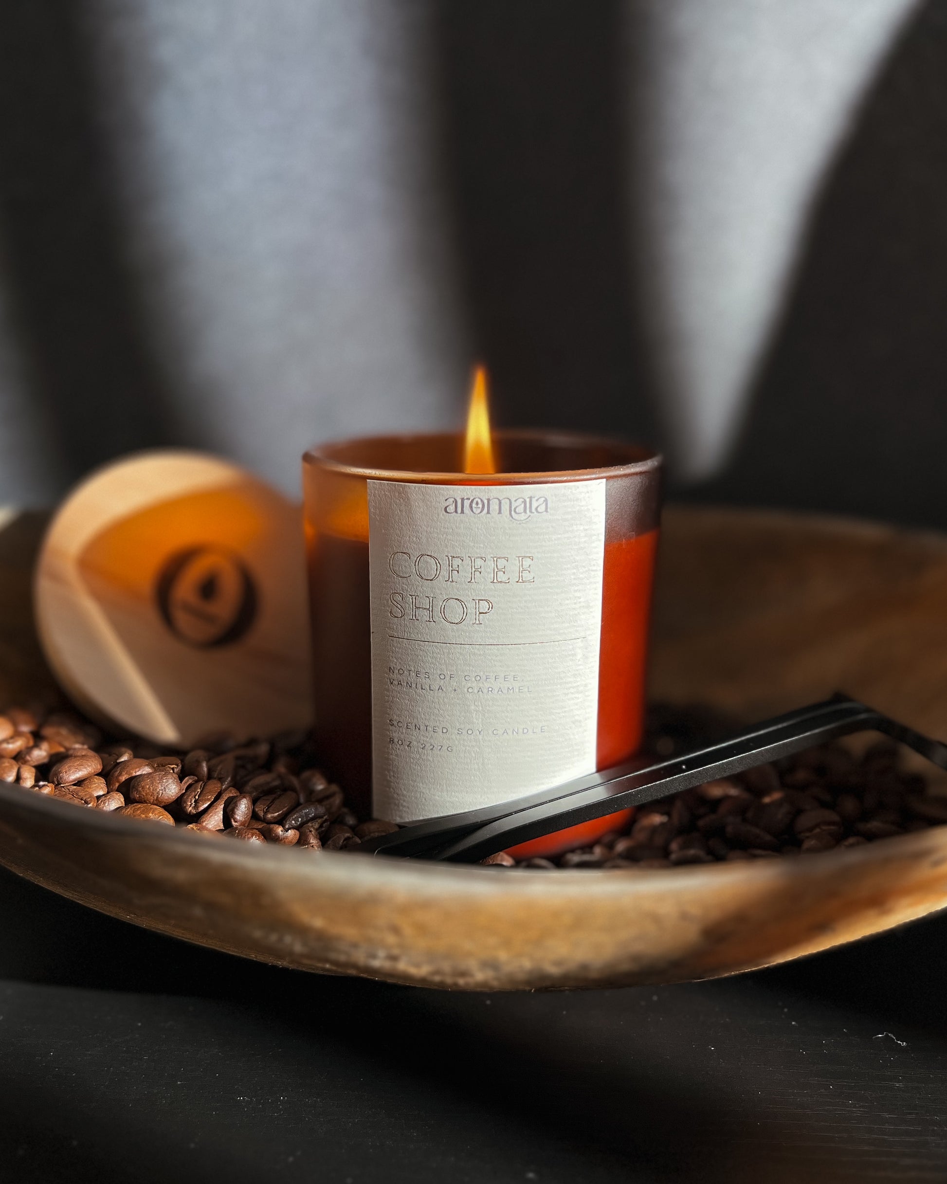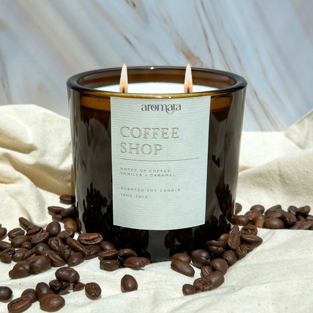 Start the day off right with the Coffee Shop candle. This energizing scent has notes of freshly ground coffee beans infused with sweet caramel and vanilla. Light this candle for a pick-me-up reminiscent of your favorite cafe.